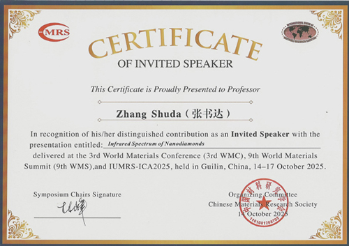 在大会上,我司总经理张书达教授,作为特邀嘉宾作了题为《纳米金刚石的红外光谱》的专题报告。